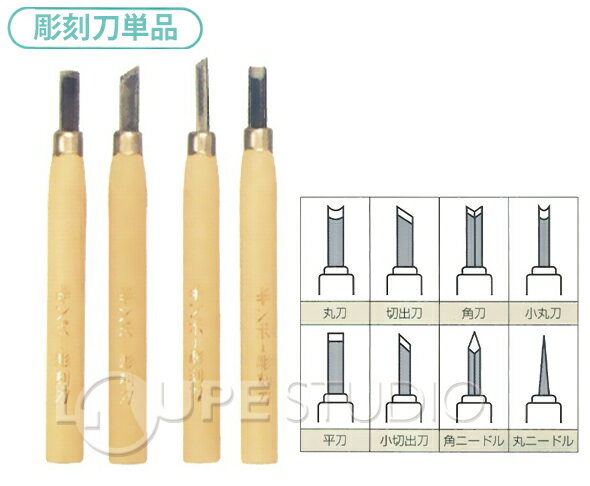 丸刀、切出刀、角刀、小丸刀、平刀、小切出刀、角ニードル、丸ニードル の8種からお選び下さい。